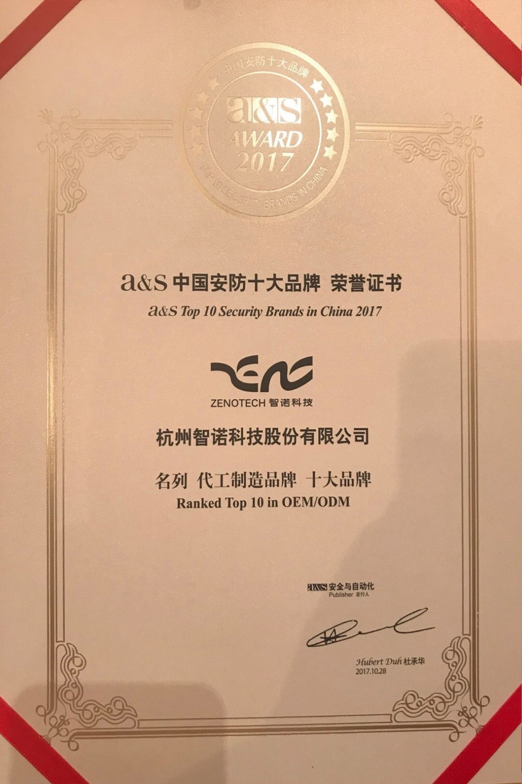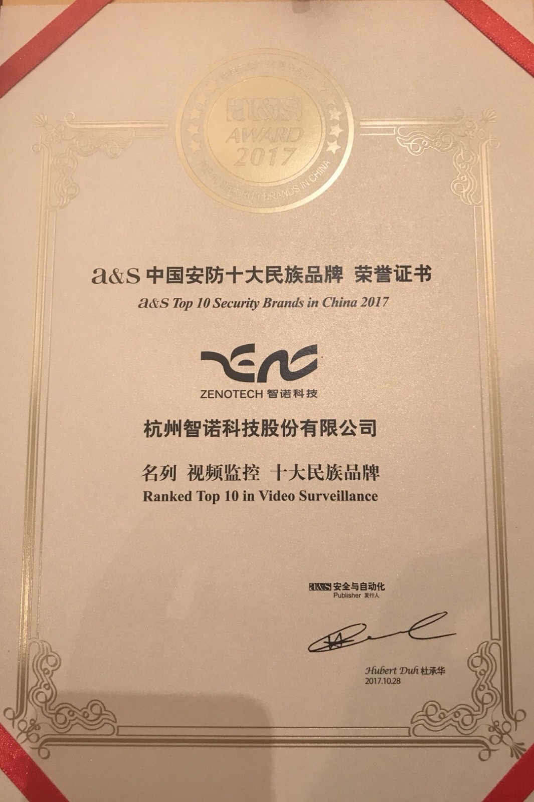 榮獲十大民族品牌 視頻監控類、代工制造品牌類