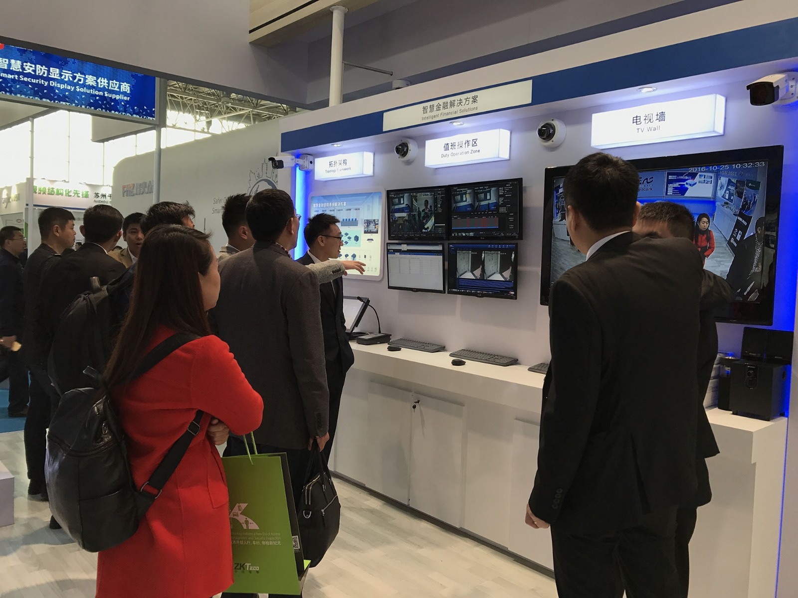 展區(qū)展出:中心監(jiān)控方案,人臉識別方案,崗?fù)ぶ凳胤桨浮?/span>
